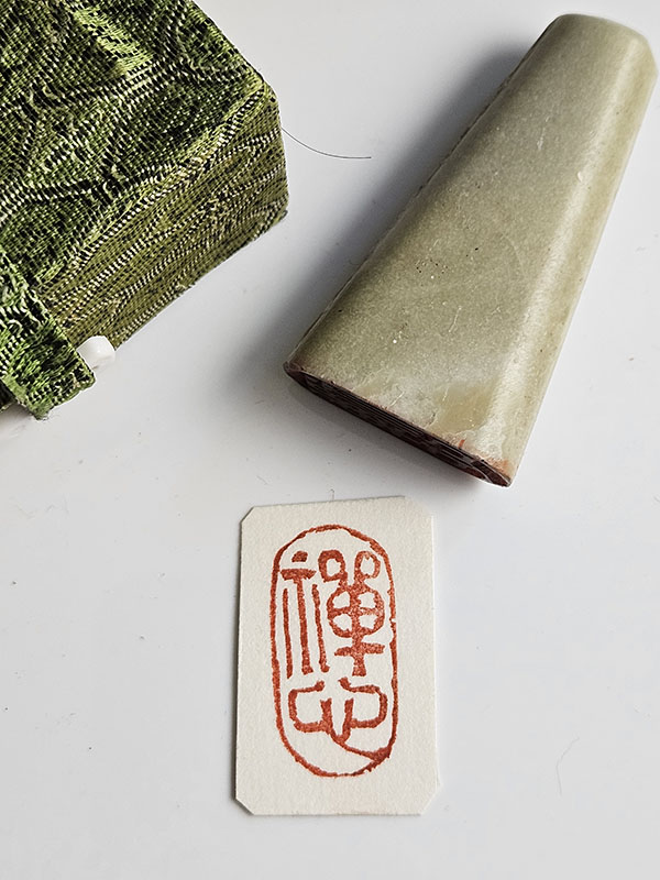 Size: Measuring at 1 1/4" x 5/8" (3cm x 1.5cm) in oval shape with a height of 1-1/2" (4cm), this seal combines elegance and meaning. It can be used as a side or corner seal on flower-and-bird or landscape Chinese brush paintings, enhancing the depth of your artistic expression.