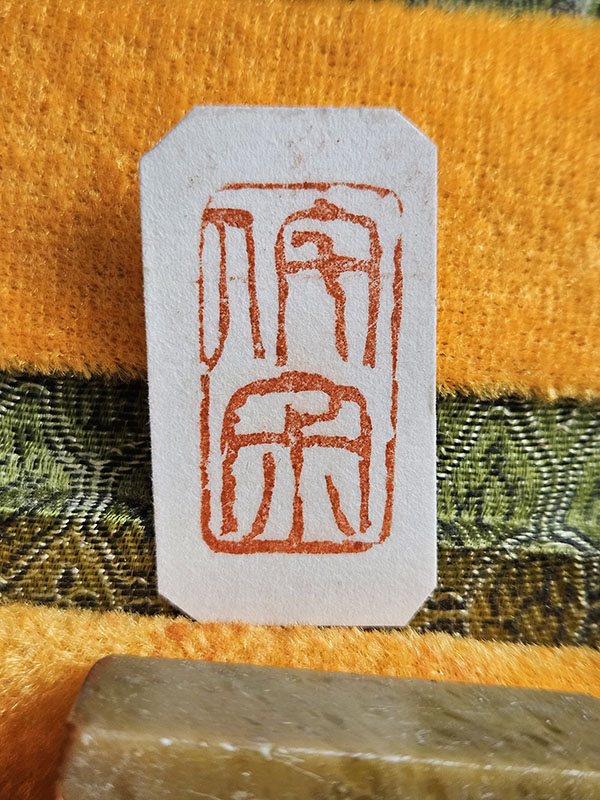Size: This "Wabi-Sabi" mood seal is carved on a rectangular Qingtian Stone, measuring 1-3/8" (3cm) in length and 5/8" (1.5cm) in width, with a height of 1-3/8" (3.5cm).