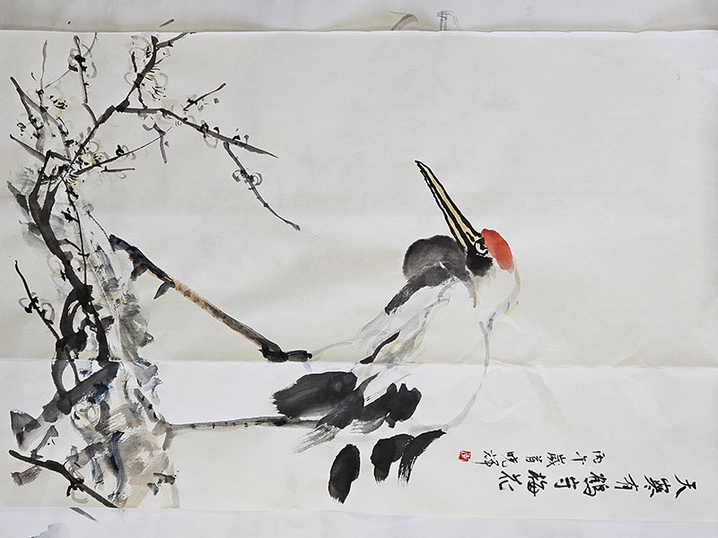 Original Red-Crowned Crane & Plum Blossom Painting by Henry Li[Red_Crowned_Crane]